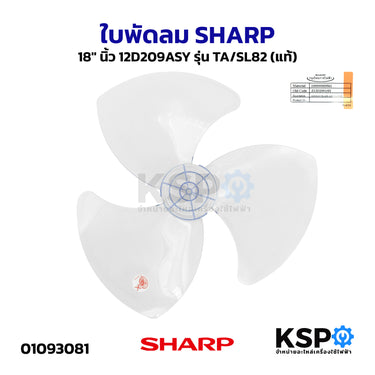 ใบพัดลม SHARP ชาร์ป ขนาดพัดลม 18" นิ้ว 12D209ASY รุ่น TA/SL82 (แท้) อะไหล่พัดลม