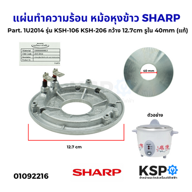 แผ่นทำความร้อน หม้อหุงข้าว SHARP ชาร์ป 0.6ลิตร Part. 1U2014 รุ่น KSH-106 กว้าง 12.7cm รูใน 40mm (แท้) อะไหล่หม้อหุงข้าว