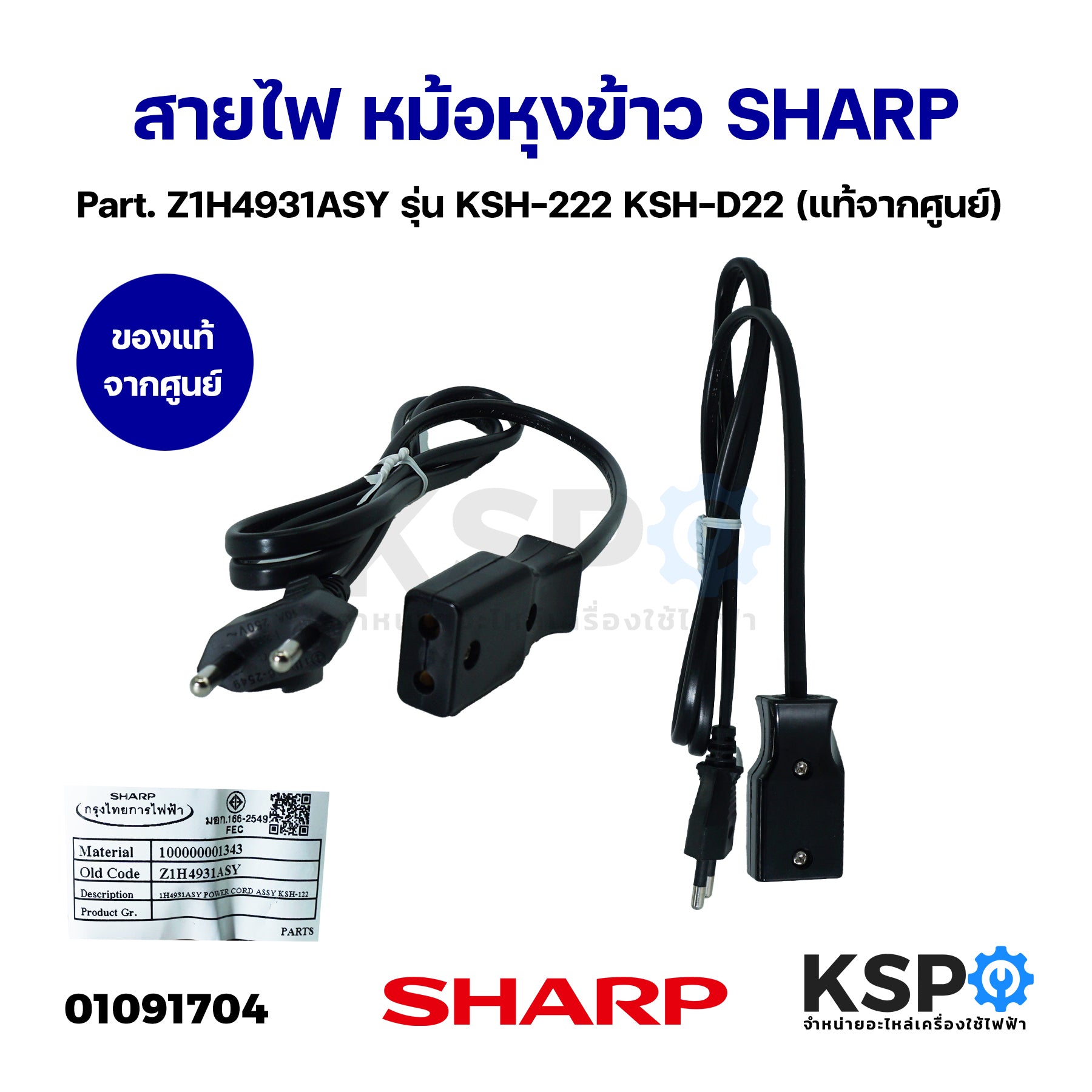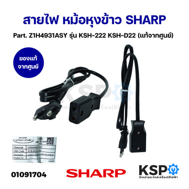สายไฟ หม้อหุงข้าว SHARP ชาร์ป Part. Z1H4931ASY รุ่น KSH-222 KSH-D22 (แท้จากศูนย์) อะไหล่หม้อหุงข้าว