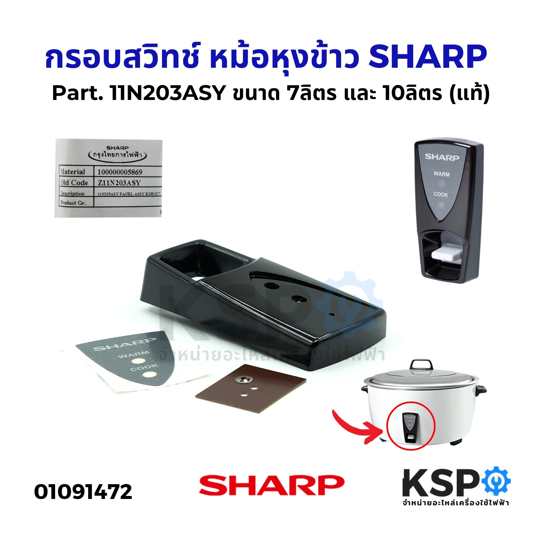 กรอบสวิทช์ หม้อหุงข้าว SHARP ชาร์ป Part. 11N203ASY ขนาด 7ลิตร และ 10ลิตร (แท้) อะไหล่หม้อหุงข้าว