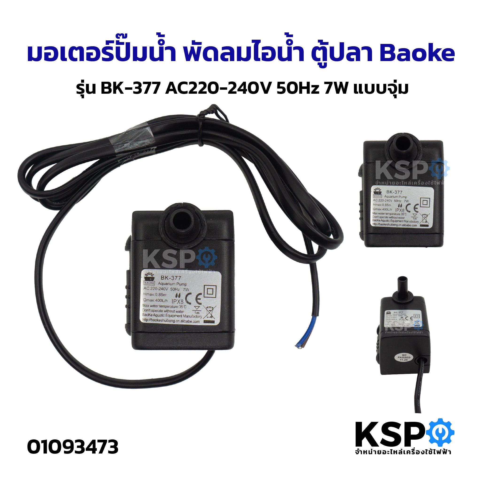 มอเตอร์ปั๊มน้ำ พัดลมไอน้ำ ตู้ปลา Baoke รุ่น BK-377 AC220-240V 50Hz 7W แบบจุ่ม อะไหล่เครื่องใช้ไฟฟ้า