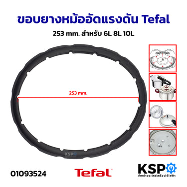 ขอบยางฝาหม้ออัดแรงดัน ขอบยางหม้อแรงดัน Tefal ทีฟาล์ว อะไหล่ทดแทนที่จำเป็นสำหรับการซ่อมแซมหม้ออัดแรงดัน Tefal ที่มีปัญหาด้านการปิดฝาไม่สนิทหรือขอบยางชำรุด ช่วยให้หม้อแรงดันของคุณกลับมาใช้งานได้อย่างปกติและปลอดภัย มี 2 ขนาดให้เลือก ขนาด 253mm สำหรับหม้อ 6L, 8L, 10L และขนาด 245mm สำหรับหม้อ 5L, 7.5L, 9L ป้องกันไอน้ำรั่วและช่วยให้หม้อแรงดันทำงานได้อย่างมีประสิทธิภาพ