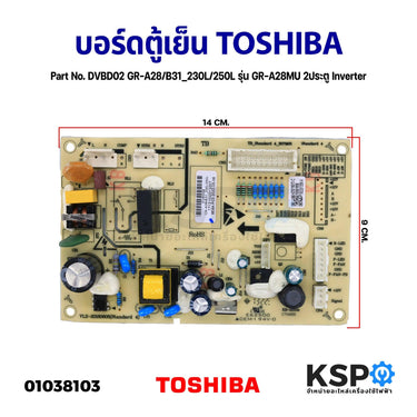 บอร์ดตู้เย็น บอร์ดตู้เย็น แผงวงจรตู้เย็น TOSHIBA โตชิบา Part No. DVBD02 GR-A28/B31_230L/250L รุ่น GR-A28MU 2ประตู Inverter อะไหล่ตู้เย็น
