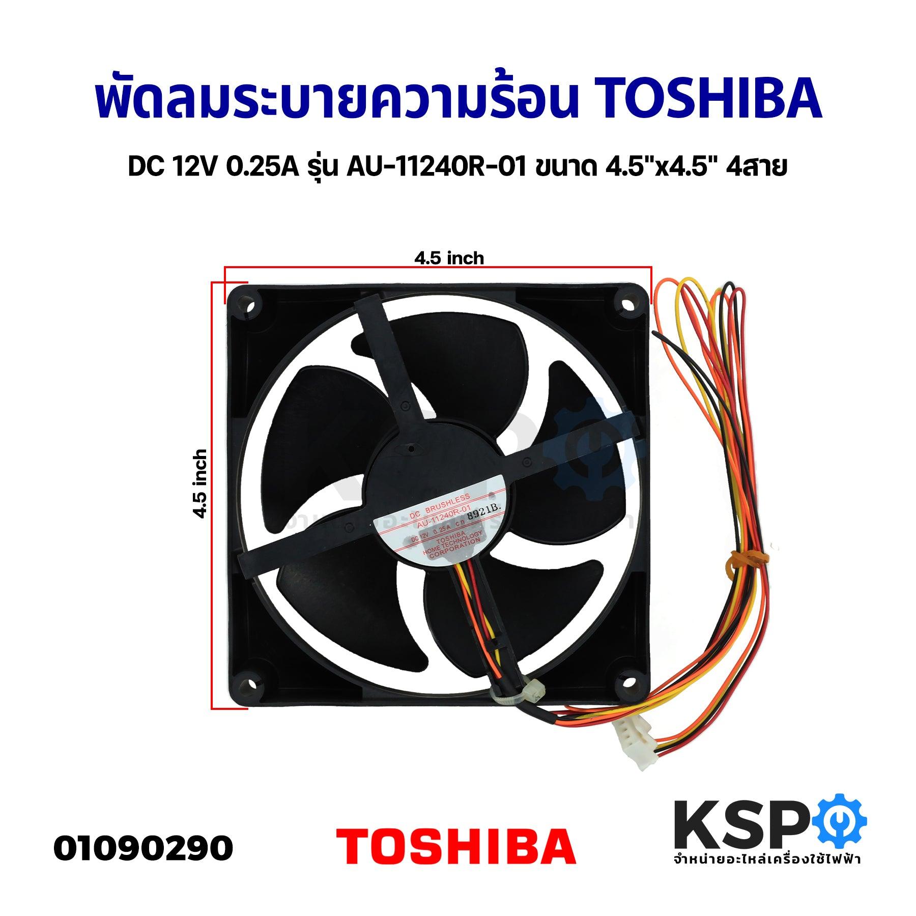 พัดลมระบายความร้อน พัดลมตู้เย็น TOSHIBA โตชิบ้า DC 12V 0.25A รุ่น AU-11240R-01 ขนาด 4.5"x4.5" 4สายอะไหล่ตู้เย็น