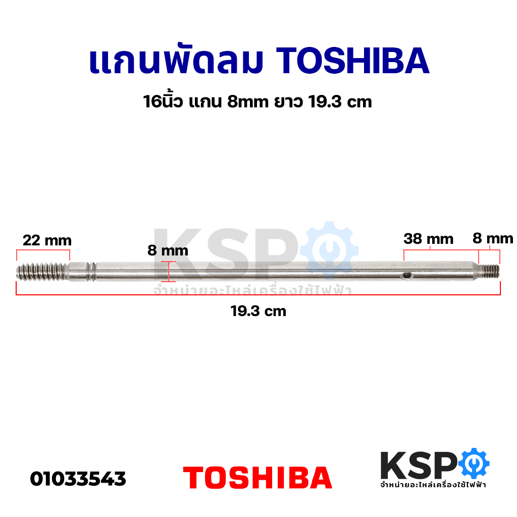 แกนพัดลม 16" นิ้ว Toshiba โตชิบา แกน 8mm ยาว 19.3 cm อะไหล่พัดลม