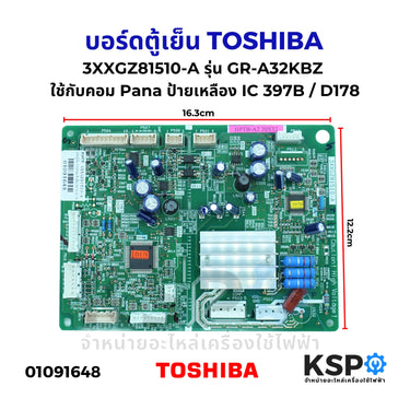บอร์ดตู้เย็น TOSHIBA โตชิบา 3XXGZ81510-A รุ่น GR-A32KBZ ใช้กับคอม Pana ป้ายเหลือง IC 397B / D178 อะไหล่ตู้เย็น