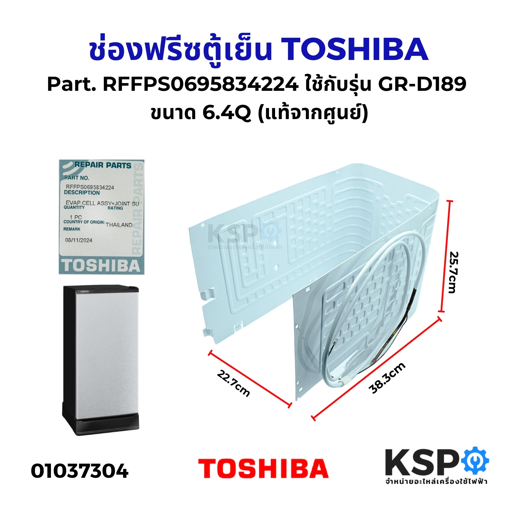 ช่องฟรีซตู้เย็น TOSHIBA โตชิบ้า Part. RFFPS0695834224 ใช้กับรุ่น GR-D189 ขนาด 6.4Q (แท้จากศูนย์) อะไหล่ตู้เย็น