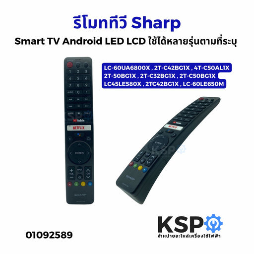 ดูรายละเอียดทั้งหมดรีโมททีวี Sharp ชาร์ป Smart TV Android LED LCD ใช้ได้หลายรุ่นตามที่ระบุ รีโมททีวีชาร์ป อะไหล่ทีวี