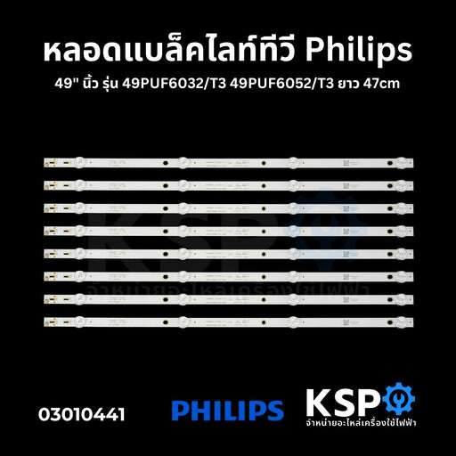 ชุดหลอดแบล็คไลท์ LED สำหรับทีวี PHILIPS ขนาด 49 นิ้ว รุ่น 49PUF6032/T3 และ 49PUF6052/T3 มาพร้อมแถบแสง 8 เส้น 9 หลอด LED ต่อเส้น ยาว 47 ซม. เหมาะสำห...
