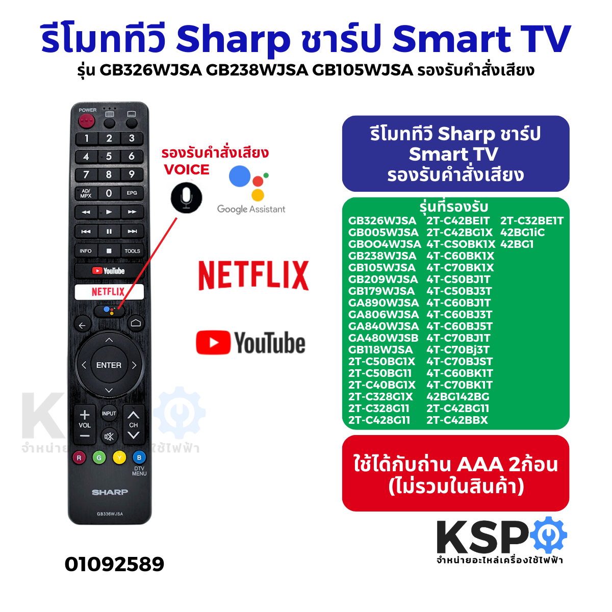 คำค้นหาที่ปรับแต่ง: รีโมททีวี SHARP, GB234WJSA, GB349WJSA, GB094WJSA, GB345WJSA, Smart TV Android, LED LCD, รีโมทชาร์ป, SHARP TV Remote Control