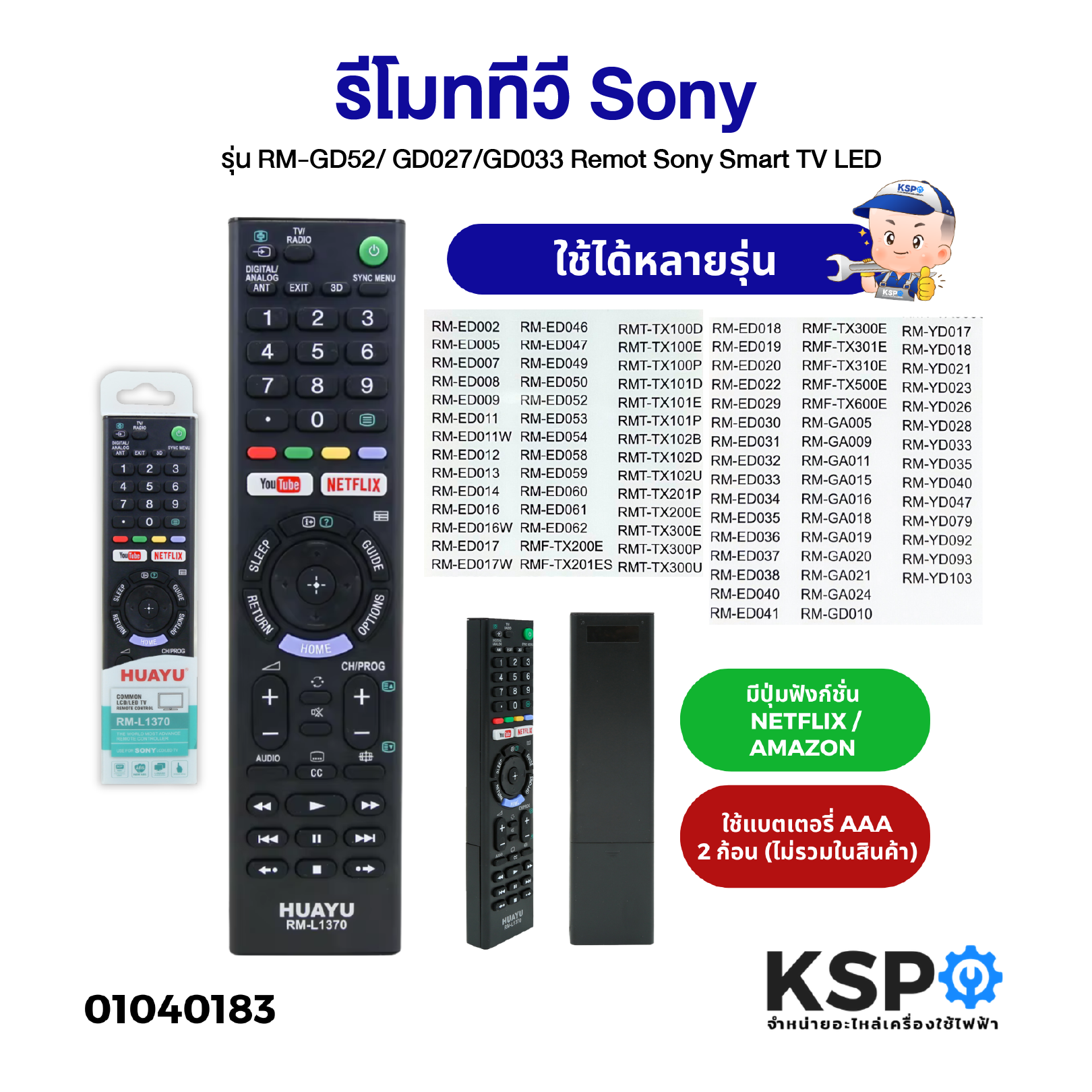 • ใช้แทนได้กับทีวี SONY Smart TV, LED TV หลายรุ่นตามที่ระบุหลังกล่อง