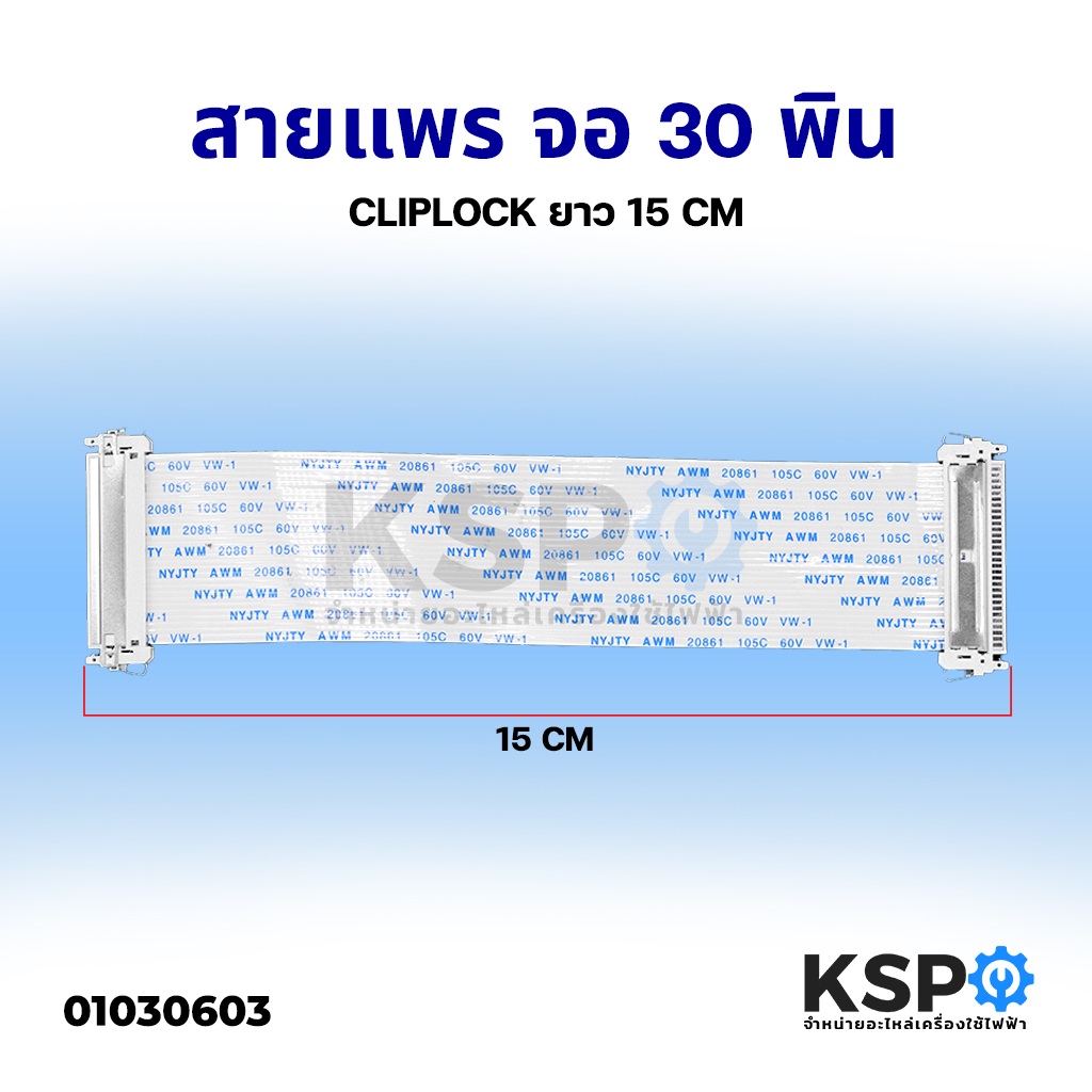 สายแพร จอทีวี 30พิน ยาว 15cm Cliplock AWM 20861 105C 60V (ด้านเหมือนกัน) อะไหล่ทีวี