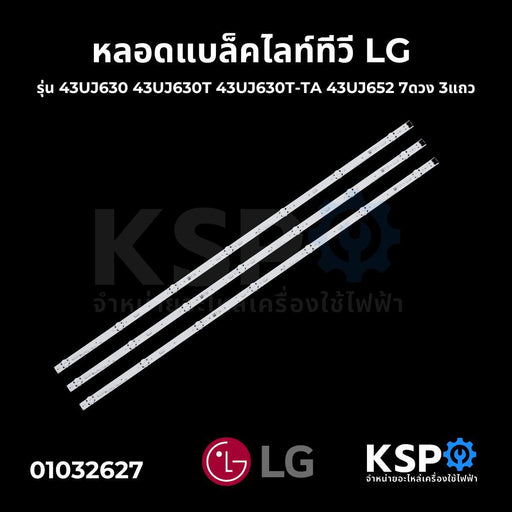 ชนิดสินค้า : หลอดทีวี LED Backlight TV ยี่ห้อ : LG แอลจี รุ่น : 43UJ630 ลักษณะ : -จำนวน 7 LED -3 แถว อะไหล่ : ทีวี