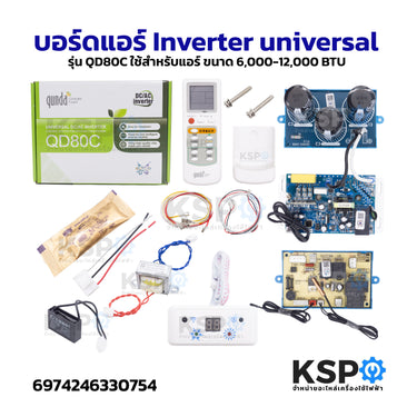 บอร์ดแอร์อินเวอร์เตอร์ รุ่น QD80C สำหรับแอร์ระบบ Inverter ขนาด 6,000–12,000 BTU ใช้ได้กับแอร์หลายรุ่นที่รองรับระบบ Universal