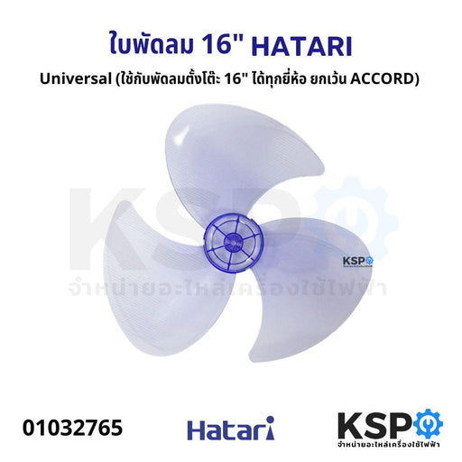 ใบพัดลม HATARI ฮาตาริ และ Universal ขนาด 16 นิ้ว แบบ 3 ใบพัด ผลิตจากวัสดุคุณภาพ หนา แข็งแรง ทนทาน ใช้ได้กับพัดลมตั้งโต๊ะและพัดลมปรับระดับ 16 นิ้วหล...