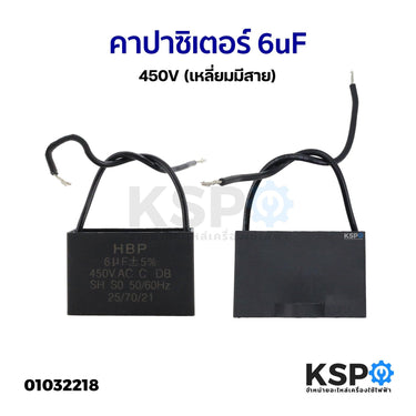คาปาซิเตอร์ พัดลม เครื่องซักผ้า 6uF 450V (เหลี่ยมมีสาย) อะไหล่พัดลม