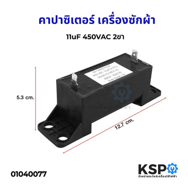 คาปาซิเตอร์ เครื่องซักผ้า 11uF 450V เหลี่ยม 2ขา อะไหล่เครื่องซักผ้า