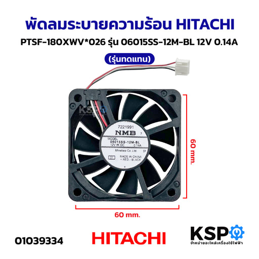 พัดลมเครื่องซักผ้า พัดลมระบายความร้อน HITACHI ฮิตาชิ PTSF-180XWV*026 รุ่น 06015SS-12M-BL 12V 0.14A (รุ่นทดแทน) อะไหล่เครื่องซักผ้า