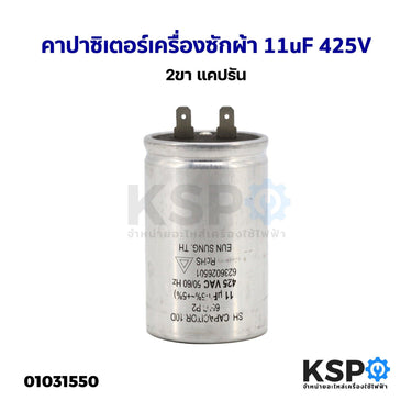คาปาซิเตอร์เครื่องซักผ้า 11uF 425V 2ขา แคปรัน (อะไหล่แท้ถอด) อะไหล่เครื่องซักผ้า
