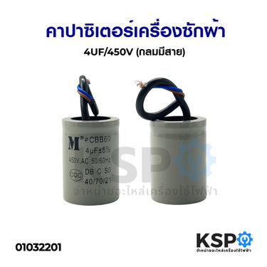 คาปาซิเตอร์เครื่องซักผ้า 4UF/450V (กลมมีสาย) อะไหล่เครื่องซักผ้า