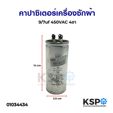 คาปาซิเตอร์เครื่องซักผ้า 9/7uf 450VAC 4ขา อะไหล่เครื่องซักผ้า