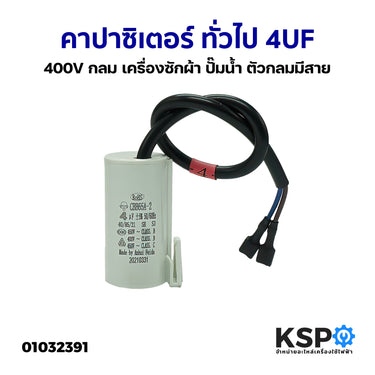 คาปาซิเตอร์ ทั่วไป 4UF 400V กลม เครื่องซักผ้า ปั๊มน้ำ ตัวกลมมีสาย อะไหล่เครื่องซักผ้า