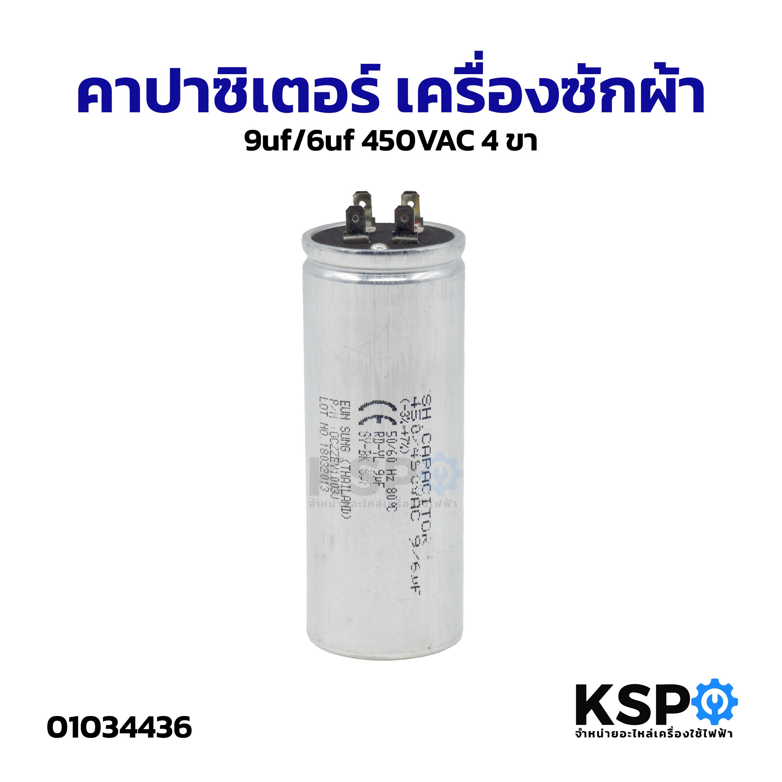คาปาซิเตอร์ เครื่องซักผ้า 9uf/6uf 450VAC 4ขา อะไหล่เครื่องซักผ้า