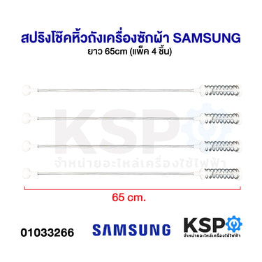 สปริงโช๊คหิ้วถังเครื่องซักผ้า SAMSUNG ความยาว 65 ซม. (แพ็ค 4 ชิ้น) ใช้สำหรับรองรับและกันสั่นสะเทือนของถังซักภายในเครื่องซักผ้า ช่วยลดแรงกระแทกขณะเครื่องทำงาน เหมาะสำหรับการเปลี่ยนอะไหล่เครื่องซักผ้าเพื่อประสิทธิภาพในการใช้งานที่ดีขึ้น