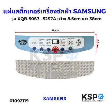 แผ่นสติ๊กเกอร์เครื่องซักผ้า SAMSUNG ซัมซุง รุ่น XQB-50S7 , 52S7A กว้าง 8.5cm ยาว 38cm อะไหล่เครื่องซักผ้า