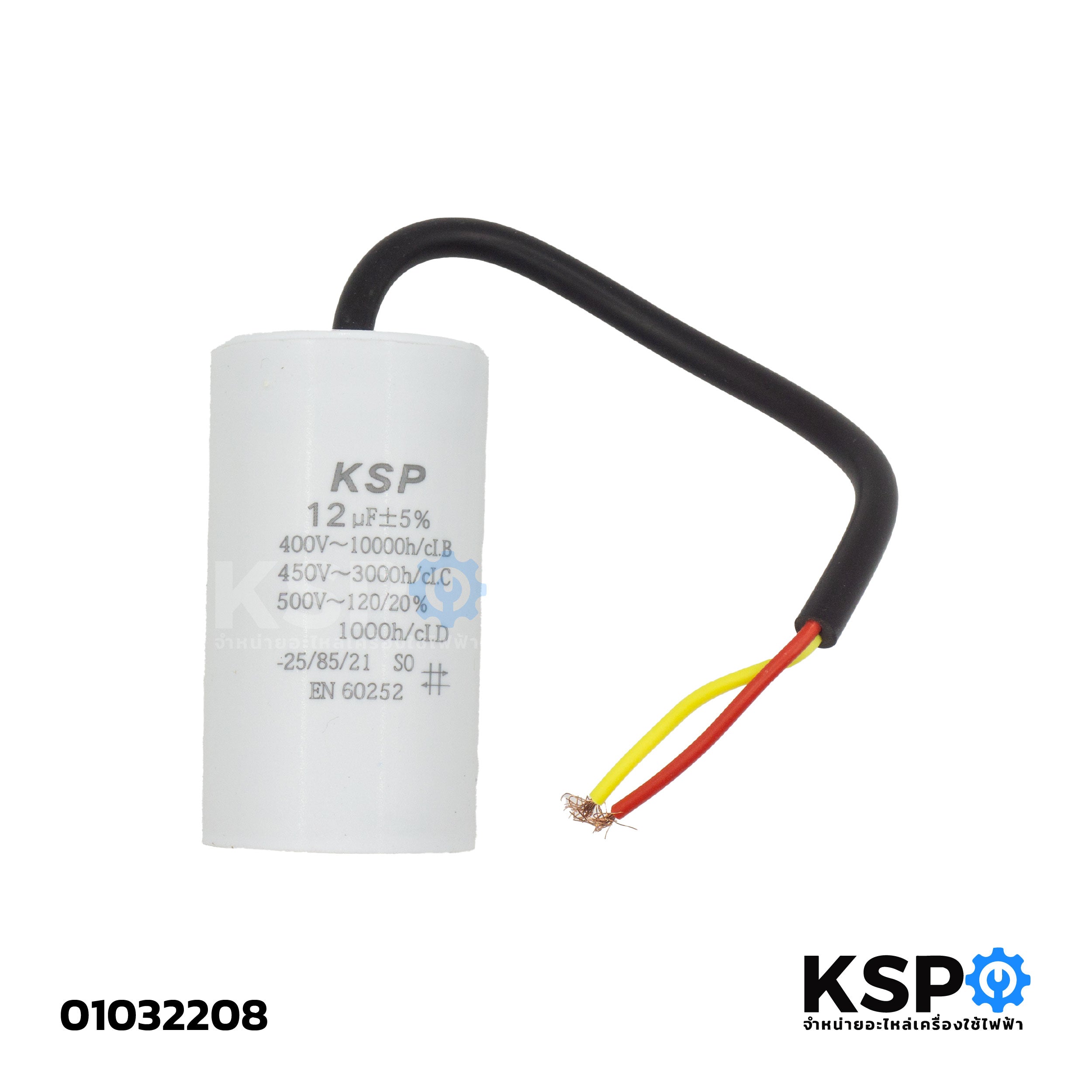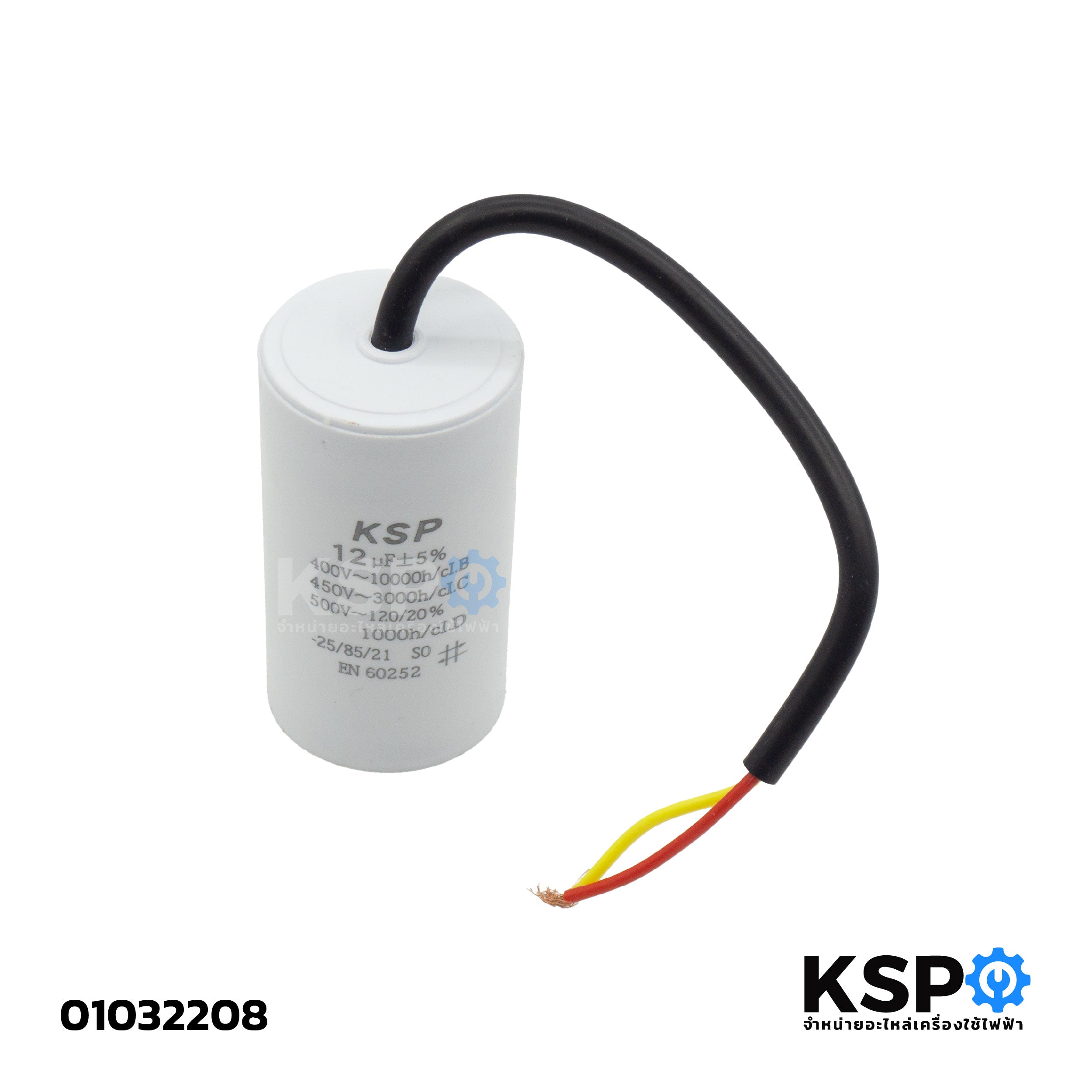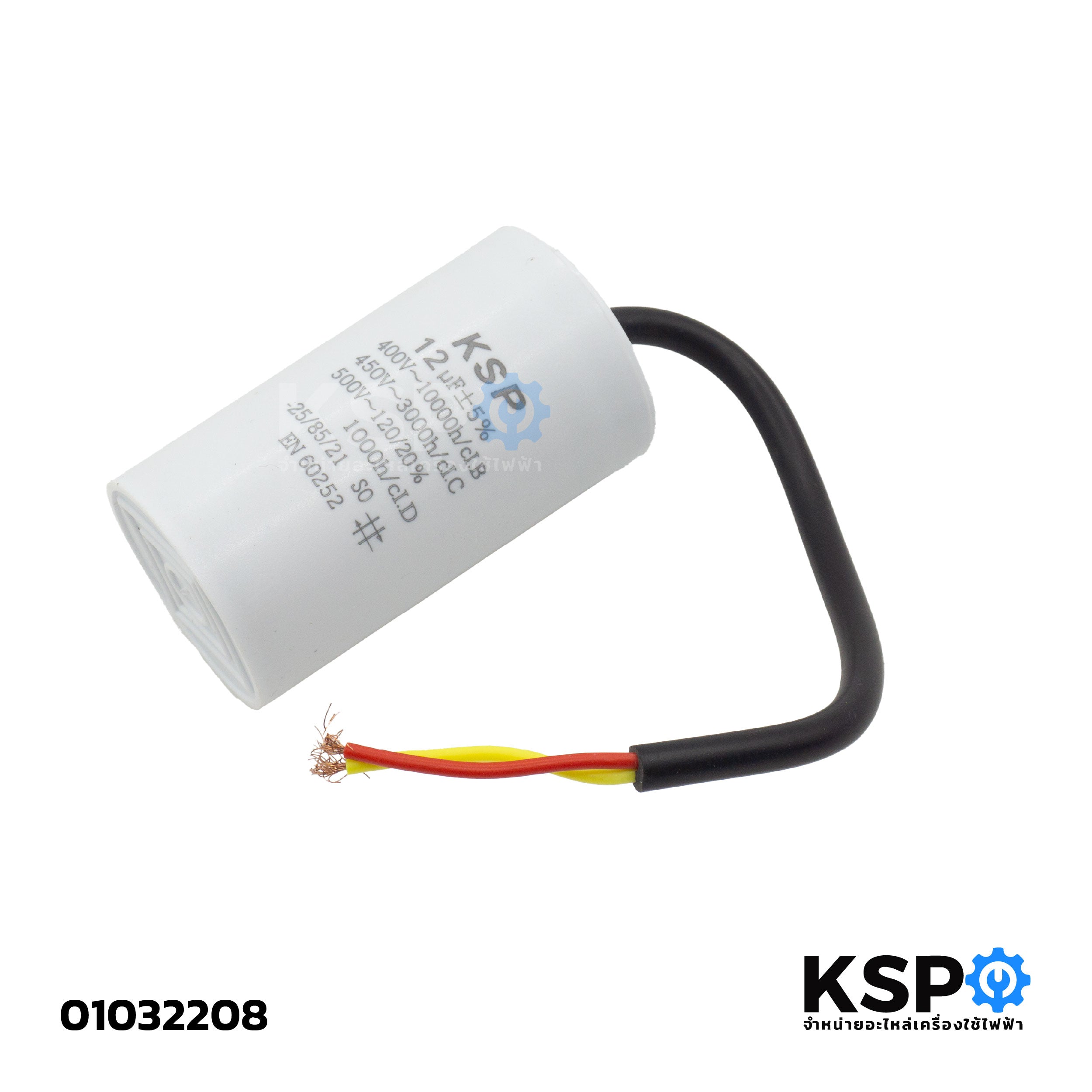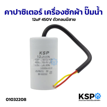 คาปาซิเตอร์ เครื่องซักผ้า ปั๊มน้ำ 12uF 450V ตัวกลมมีสาย (คละสี) อะไหล่เครื่องซักผ้า