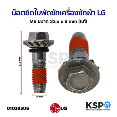 น๊อตยึดใบพัดซักเครื่องซักผ้า LG แอลจี M8 ขนาด 32.5x8mm (แท้) อะไหล่เครื่องซักผ้า
