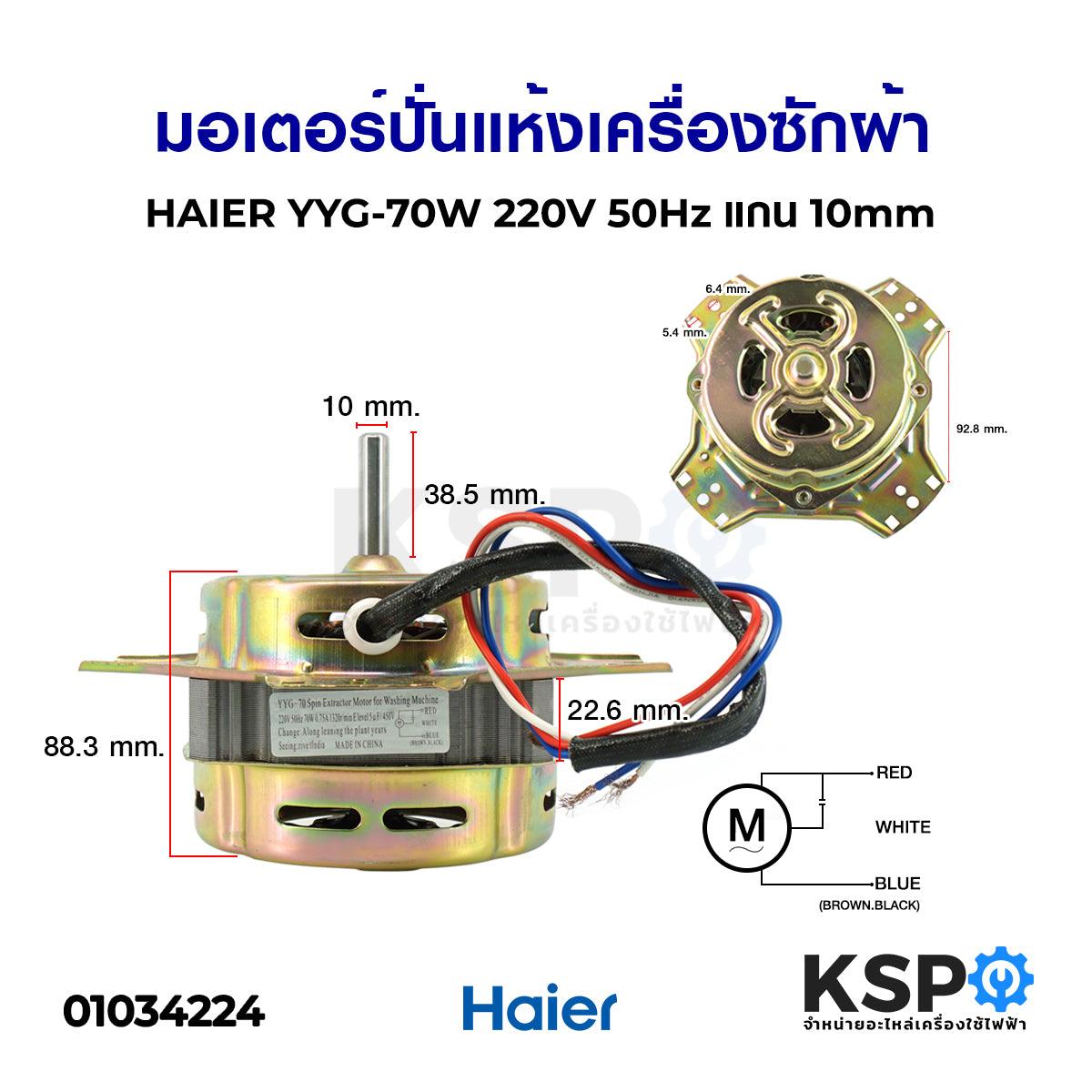มอเตอร์ปั่นแห้ง เครื่องซักผ้า HAIER ไฮเออร์ YYG-70W 220V 50Hz แกน 10mm อะไหล่เครื่องซักผ้า