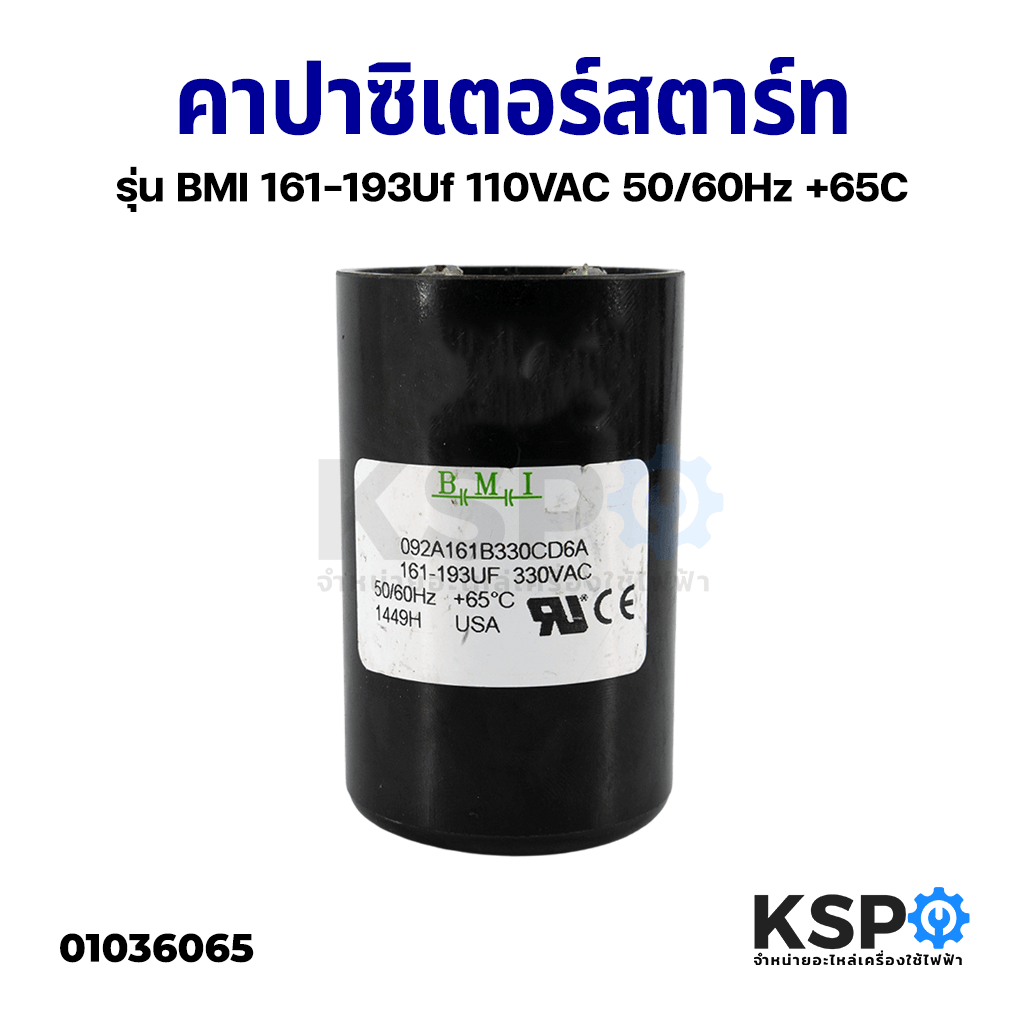 คาปาซิเตอร์สตาร์ท ใช้กับ ปั๊มน้ำบาดาล ปั๊มซัมเมอร์ส รุ่น BMI 161-193Uf 110VAC 50/60Hz +65C อะไหล่ปั๊มน้ำ