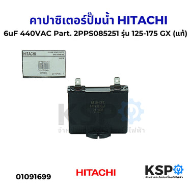 คาปาซิเตอร์ปั๊มน้ำ HITACHI ฮิตาชิ 6uF 440VAC Part. 2PPS085251 รุ่น 125-175 GX (แท้) อะไหล่ปั๊มน้ำ
