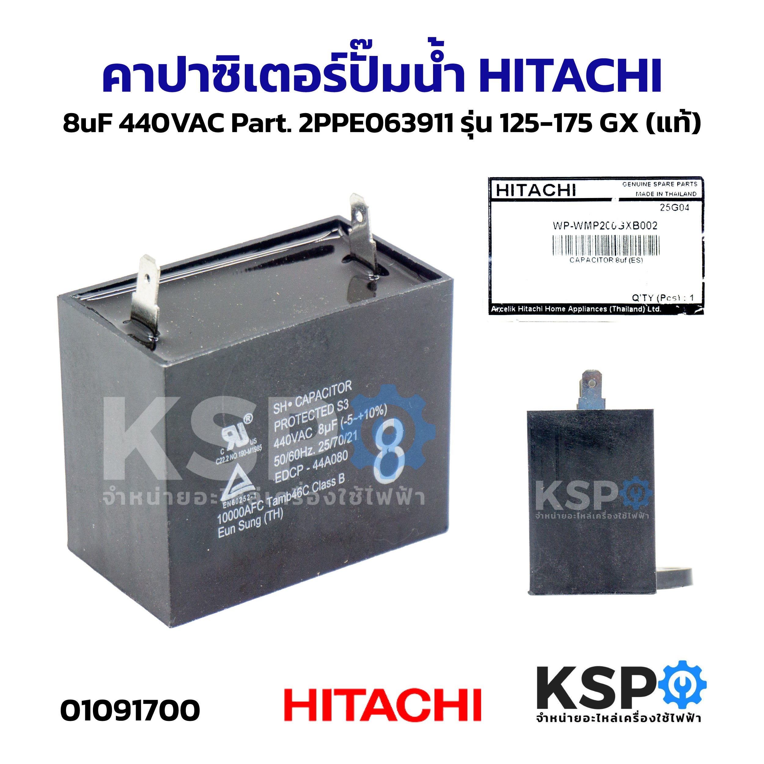 คาปาซิเตอร์ปั๊มน้ำ HITACHI ฮิตาชิ 8uF 440VAC Part. 2PPE063911 รุ่น 125-175 GX (แท้) อะไหล่ปั๊มน้ำ