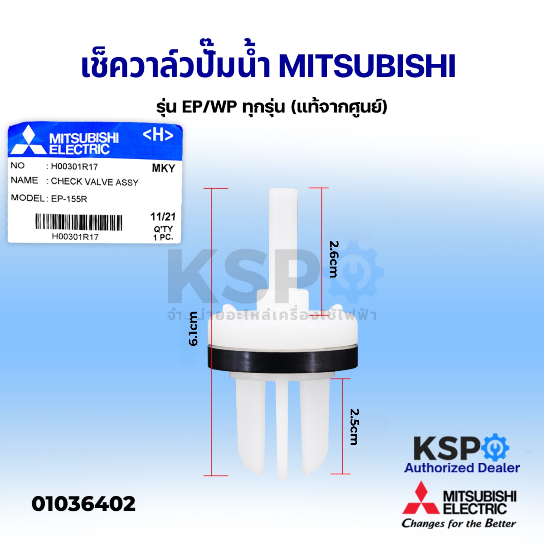 เช็ควาล์ว ปั๊มน้ำ MITSUBISHI มิตซูบิชิ Part No. H00301R17 รุ่น EP/WP ทุกรุ่น Check Valve (แท้จากศูนย์) อะไหล่ปั้มน้ำ