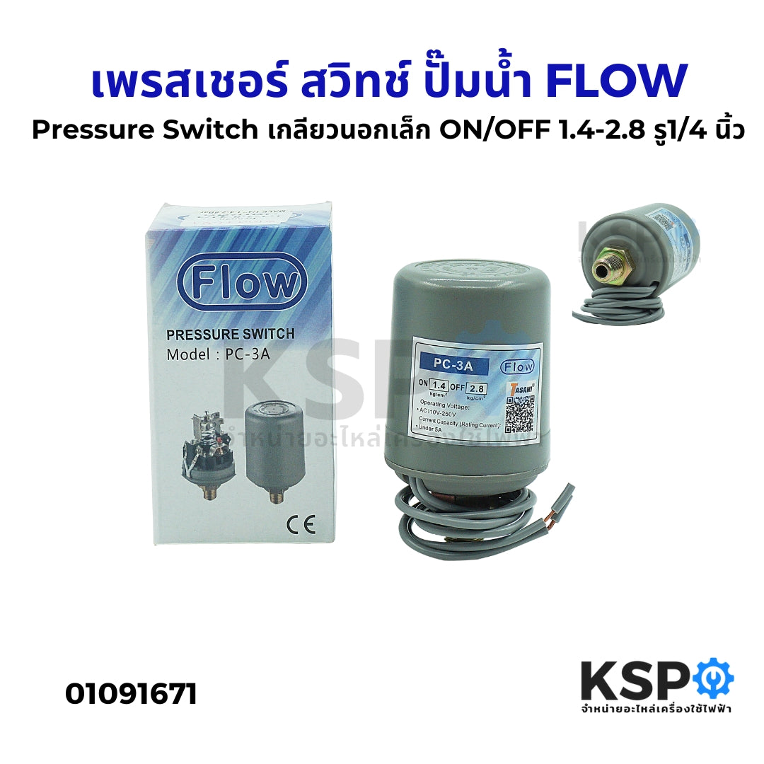 เพรสเชอร์ สวิทช์ Pressure Switch ปั๊มน้ำ FLOW เกลียวนอกเล็ก ON/OFF 1.4-2.8 รู1/4 นิ้ว เพรสเชอร์สวิทช์ปั้มน้ำ สวิทออโต้ สวิทแรงดัน อะไหล่ปั๊มน้ำ