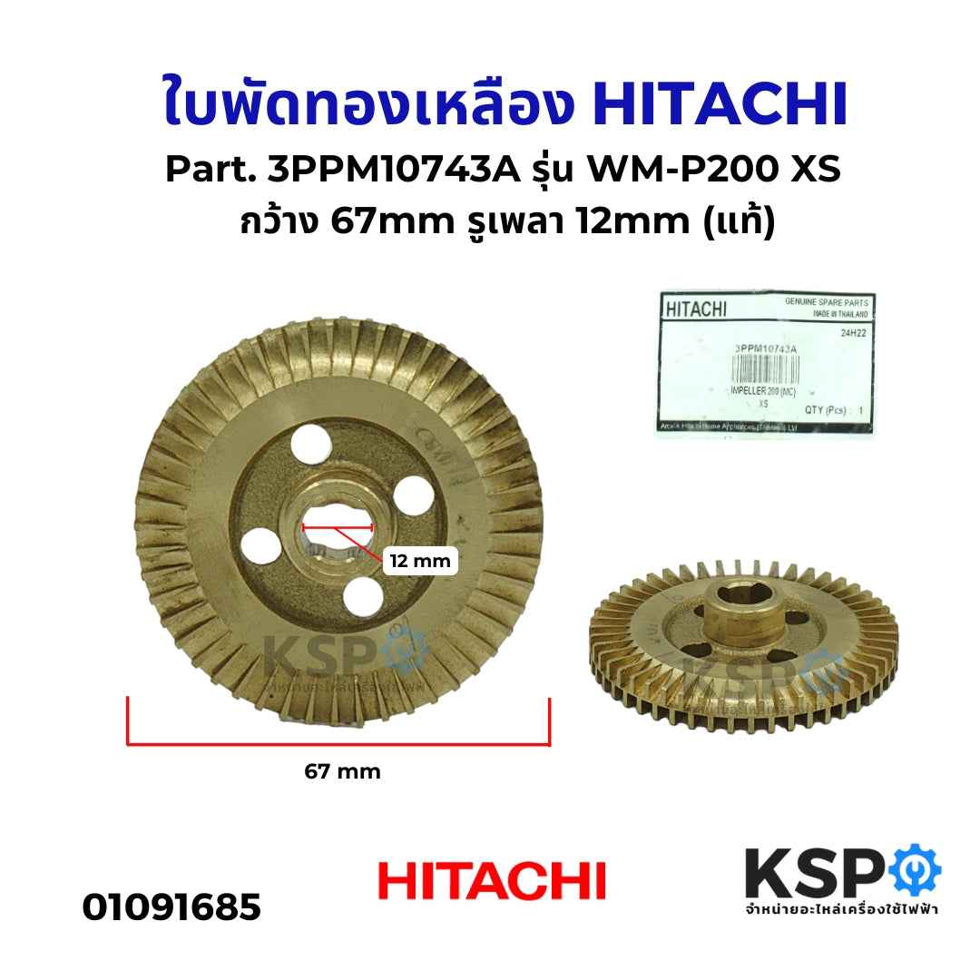 ใบพัดทองเหลือง HITACHI ฮิตาชิ Part. 3PPM10743A รุ่น WM-P200 XS กว้าง 67mm รูเพลา 12mm (แท้) อะไหล่ปั๊มน้ำ