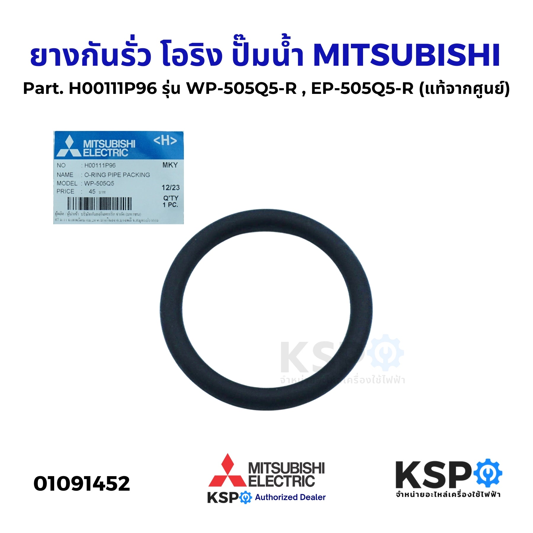 ยางกันรั่ว MITSUBISHI รุ่น H00111P96 ออกแบบมาเพื่อใช้กับปั๊มน้ำ MITSUBISHI รุ่น WP-505Q5-R และ EP-505Q5-R ซึ่งมีคุณสมบัติช่วยป้องกันการรั่วซึมของน้ำในระบบท่อส่งน้ำ ช่วยให้ระบบปั๊มน้ำทำงานได้อย่างมีประสิทธิภาพ