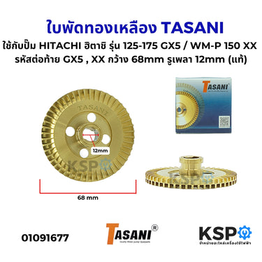 ใบพัดทองเหลือง TASANI ใช้กับปั๊ม HITACHI ฮิตาชิ รุ่น 125-175 GX5, XX กว้าง 68mm รูเพลา 12mm (แท้) อะไหล่ปั๊มน้ำ