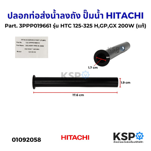 ปลอกท่อส่งน้ำลงถัง ปั๊มน้ำ HITACHI ฮิตาชิ Part. 3PPP019661 รุ่น HTC 125-325 H,GP,GX 200W (แท้) อะไหล่ปั๊มน้ำ