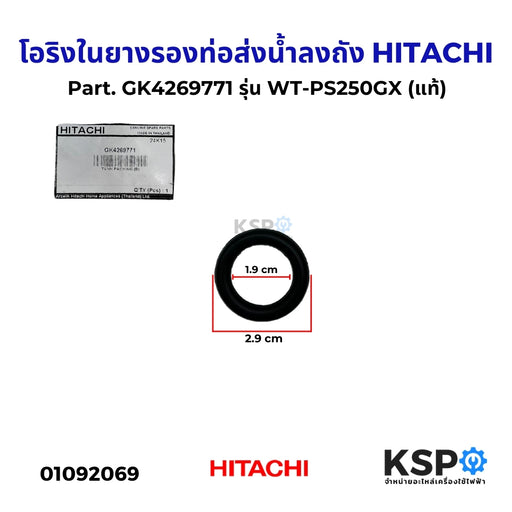 โอริงในยางรองท่อส่งน้ำลงถัง HITACHI ฮิตาชิ Part. GK4269771 รุ่น WT-PS250GX แหวนยางรองหน้าแปลนท่อส่งน้ำ (แท้) อะไหล่ปั้มน้ำ