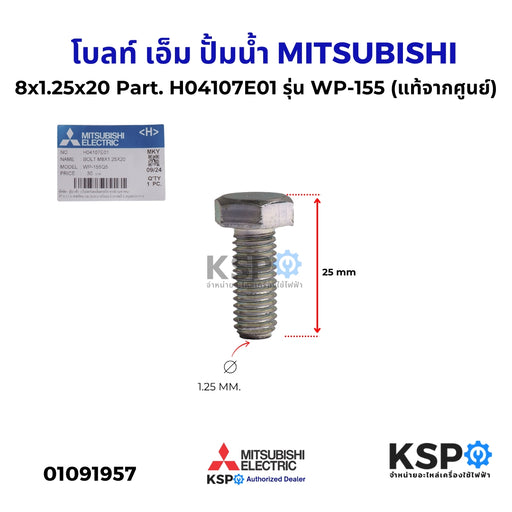 โบลท์ เอ็ม ปั้มน้ำ MITSUBISHI มิตซูบิชิ 8x1.25x20 Part. H04107E01 รุ่น WP-155 (แท้จากศูนย์) อะไหล่ปั๊มน้ำ