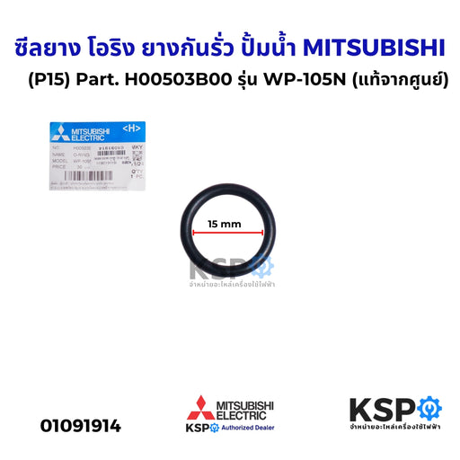 ซีลยาง โอริง ยางกันรั่ว (P15) ปั้มน้ำ MITSUBISHI มิตซูบิชิ Part. H00503B00 รุ่น WP-105N (แท้จากศูนย์) อะไหล่ปั๊มน้ำ