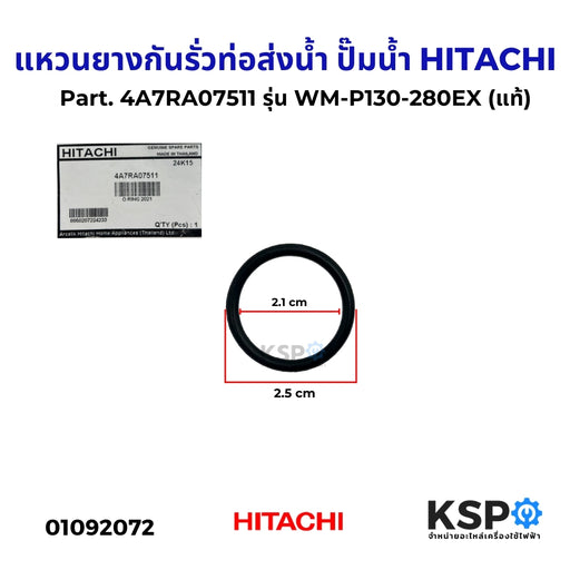 แหวนยางกันรั่ว ท่อส่งน้ำ ปั๊มน้ำ HITACHI ฮิตาชิ Part. 4A7RA07511 รุ่น WM-P130-280EX (แท้) อะไหล่ปั้มน้ำ