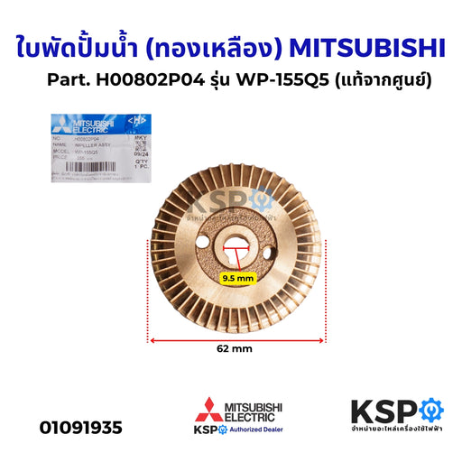 ใบพัดปั้มน้ำ (ทองเหลือง) MITSUBISHI มิตซูบิชิ Part. H00802P04 รุ่น WP-155Q5 (แท้จากศูนย์) อะไหล่ปั๊มน้ำ