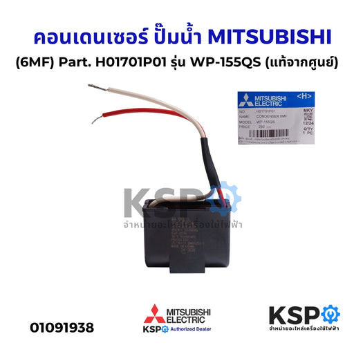 คาปาซิเตอร์ คอนเดนเซอร์ ปั๊มน้ำ MITSUBISHI มิตซูบิชิ (6MF) Part. H01701P01 รุ่น WP-155QS (แท้จากศูนย์) อะไหล่ปั๊มน้ำ