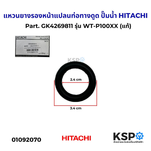 แหวนยางรองหน้าแปลนท่อทางดูด ปั๊มน้ำ HITACHI ฮิตาชิ Part. GK4269811 รุ่น WT-P100XX (แท้) อะไหล่ปั๊มน้ำ
