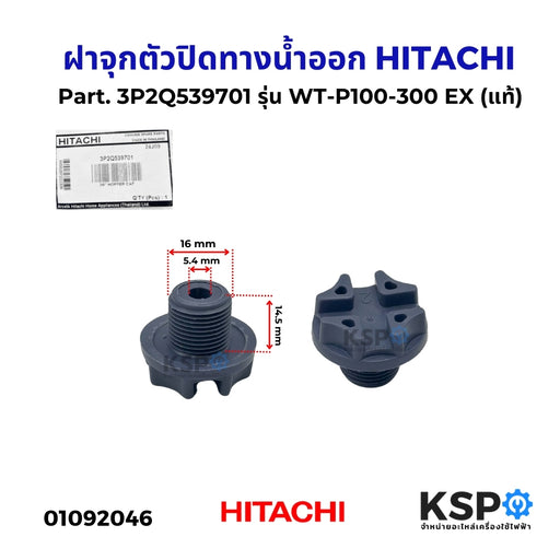 ฝาจุกตัวปิดทางน้ำออก HITACHI ฮิตาชิ Part. 3P2Q539701 รุ่น WT-P100-300 EX ฝาจุกถ่ายน้ำ (แท้) อะไหล่ปั้มน้ำ