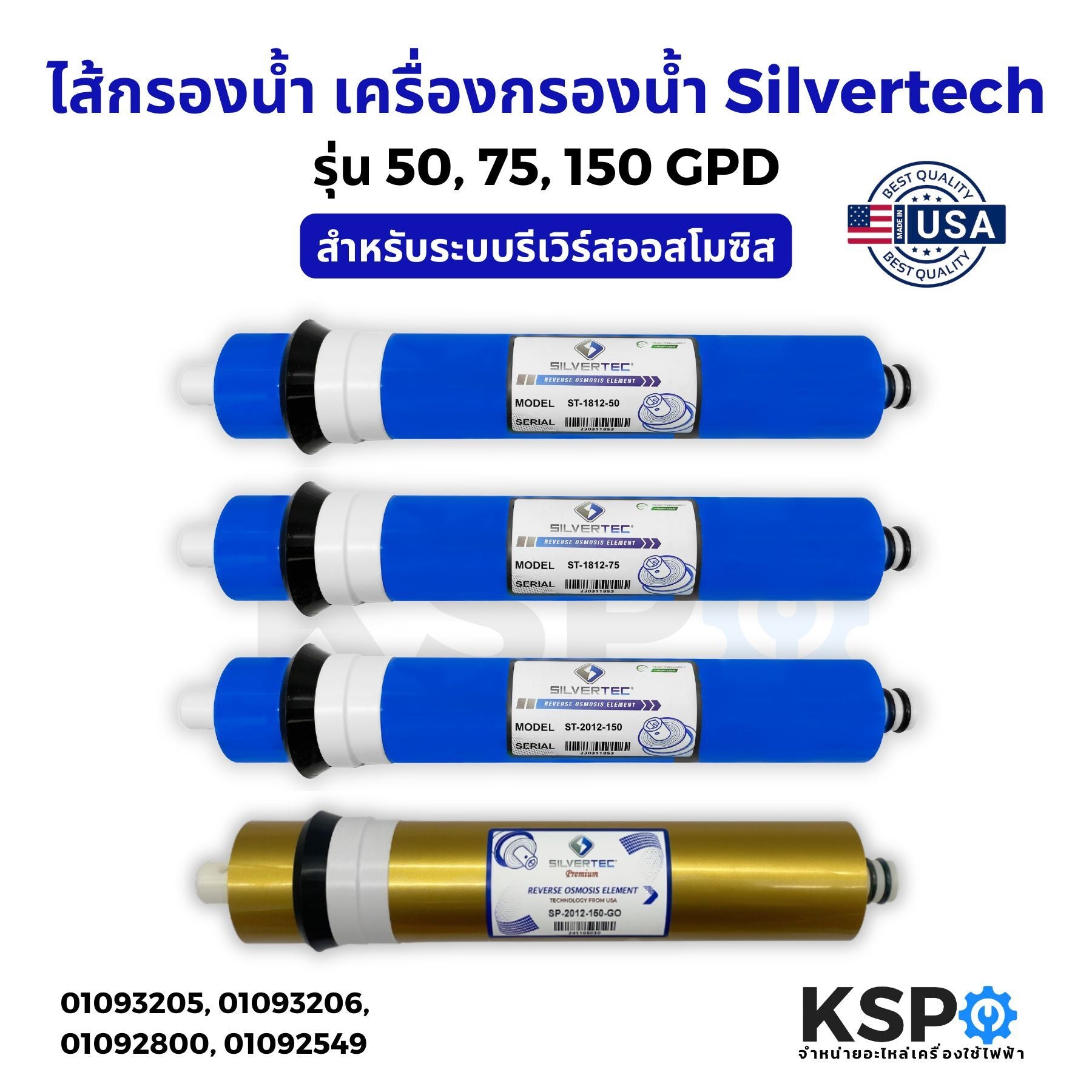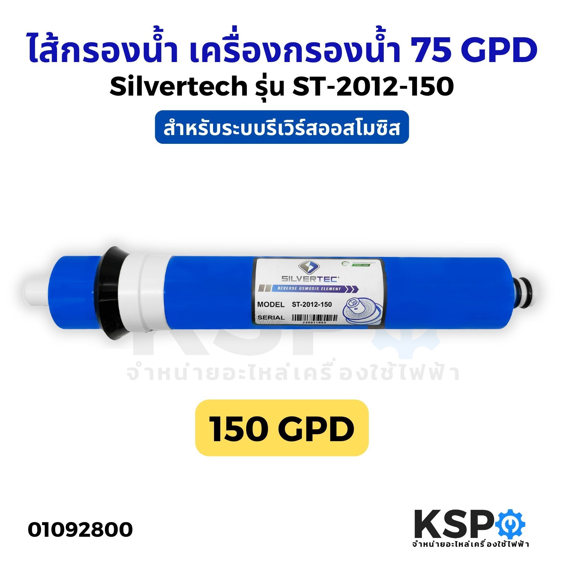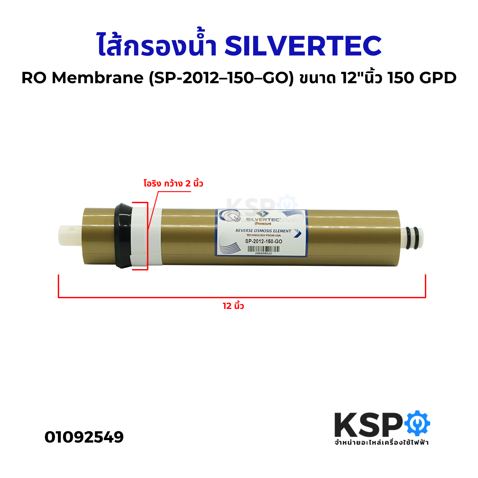 ไส้กรองน้ำ RO Membrane SILVERTEC (SP-2012-150-GO) ขนาด 12"นิ้ว 150 GPD เครื่องกรองน้ำ ตู้น้ำหยอดเหรียญ (1แท่ง) อะไหล่เครื่องกรองน้ำคุณภาพสูงสำหรับการกรองน้ำด้วยระบบ Reverse Osmosis ช่วยกำจัดสารปนเปื้อน แร่ธาตุส่วนเกิน เชื้อโรค และสิ่งสกปรกต่างๆ ให้น้ำสะอาดบริสุทธิ์ ปลอดภัยต่อการดื่มและใช้งาน กรองได้ 150 แกลลอนต่อวัน เหมาะสำหรับใช้ในบ้านขนาดใหญ่ สำนักงาน ร้านค้า และตู้น้ำหยอดเหรียญ